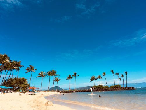 料理が来るまでしばし、ビーチを見ながらボーっとする。このビーチは、カハラホテルの宿泊者ぐらいしか来ない場所なので、まるでプライベートビーチのよう。静かで落ち着いています。