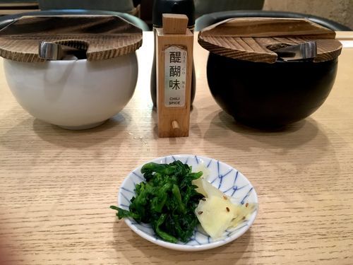 日本の店ではゴボウのガリが有名ですが、こちらは普通のガリにゴマを混ぜたものでした。