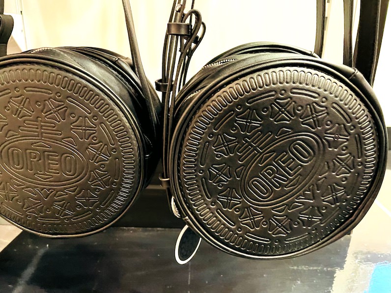 店内を見た結果、私はオレオの丸いカバンを買うか迷い中。