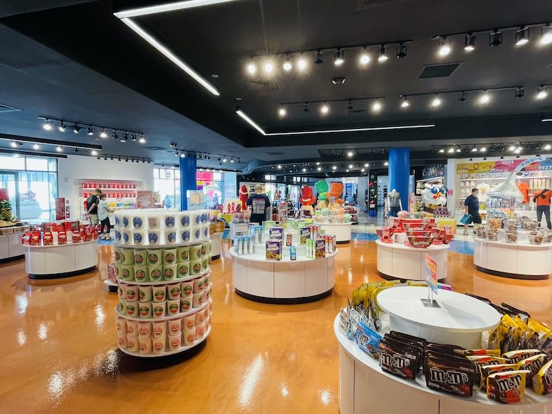 専門店っていってもオリジナルを作っているわけでなくて、M&M’sやペッツ、キットカットなど日本でおなじみのお菓子を始め、サワーパッチやスキットルズなどアメリカでは定番のお菓子とそのグッズを扱っているそうだ。
